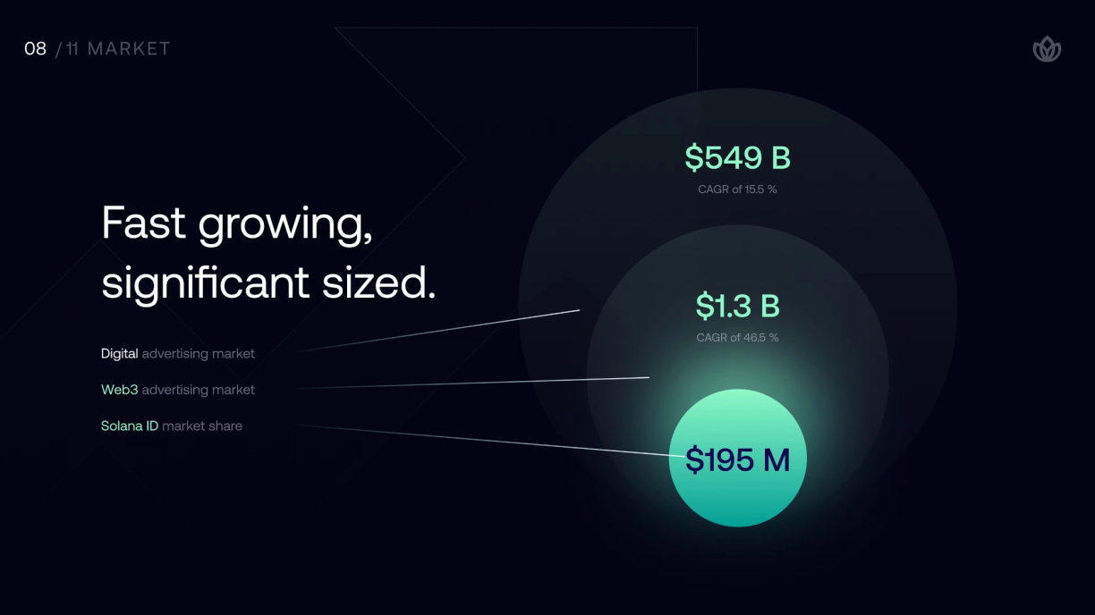 On a longer-term horizon, Solana ID is in direct competition to capture a share of the global targeted ads market. According to optimistic projections from the team, Solana ID could potentially capture a market size worth $195 million.