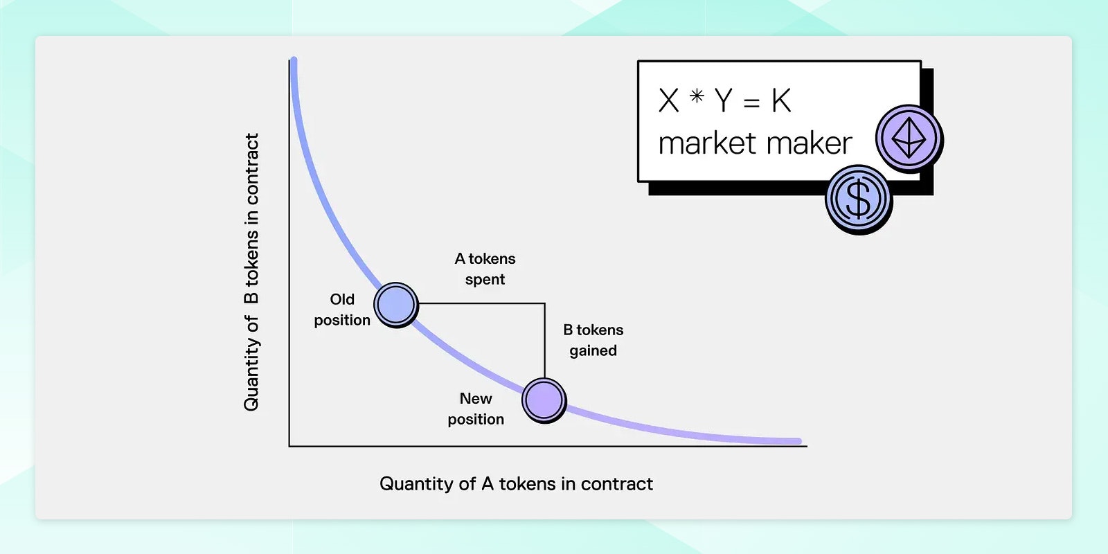 Where X = Reserve of the 1st token; Y = Reserve of the 2nd token; and K = constant