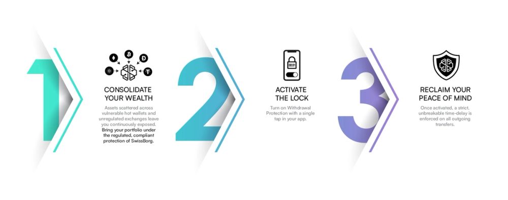 It is time to take absolute control of your security. Move your assets to SwissBorg, and activate Withdrawal Protection today.