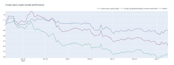 Even though the token negatively impacted the performance of Crypto Stars, the strategy still significantly outperforms its benchmark—an equally weighted portfolio of all the tokens listed on SwissBorg. As of 15.04.25, Crypto Stars is down -42.25%, compared to -58.14% for the benchmark.