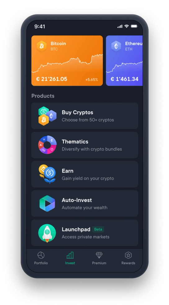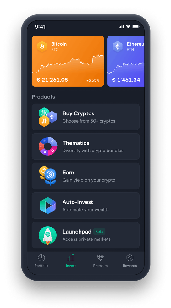 The other characteristic that the SwissBorg app is known for is how easy it is to use. And now, with the brand new Invest tab, the app has become comprehensible than ever before. The new Invest tab allows you to find all the richness of the SwissBorg app in one screen - all your favourite products under a single view.