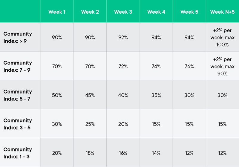 Below are the factors that are the six subscores that contribute to the the weekly Community Index score: