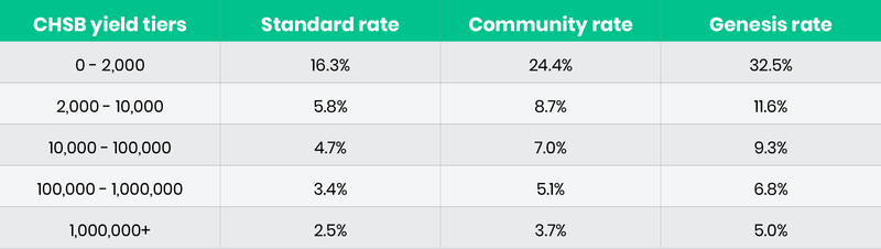 CHSB Yield 2.0 uses a tiers system, where the rewards offered to users are different for each level of CHSB they hold. The highest yields are available for each user’s first 2,000 CHSB, which is designed to help newer investors grow their wealth faster and motivate more investors to join the SwissBorg ecosystem.