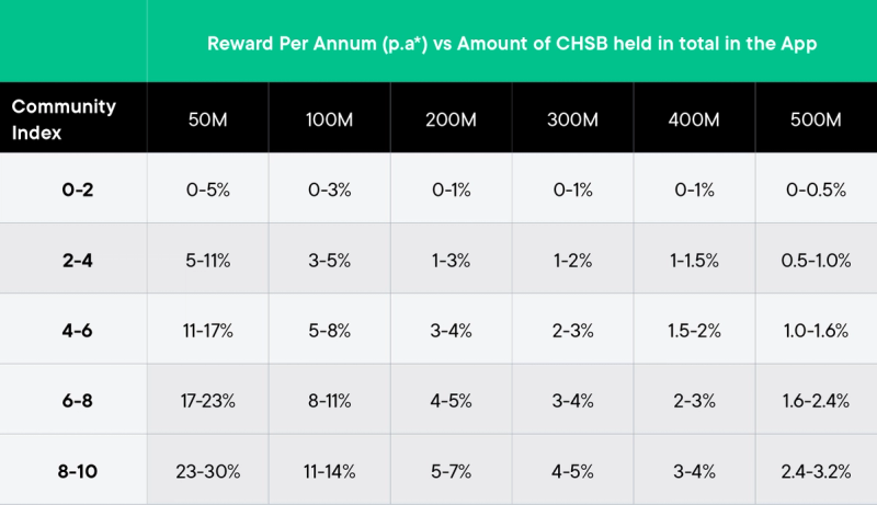 We then took this up another notch with the launch of CHSB Yield 2.0 in November, with maximum yields of up to 30% available for the first 2,000 CHSB held in the CHSB yield wallet.