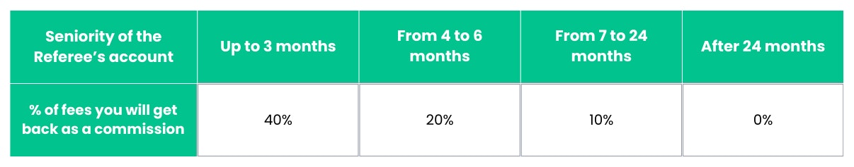 The commission you will receive will change in time according to the following table.