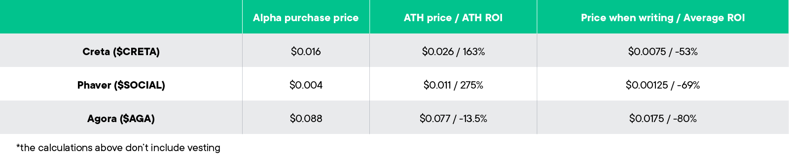 We are working closely with all of the teams and figuring out ways to salvage these investments and give them their rightful place in the charts. For example, we have reached an agreement with the Phaver team to provide additional tokens, reducing the purchase price for Alpha investors.