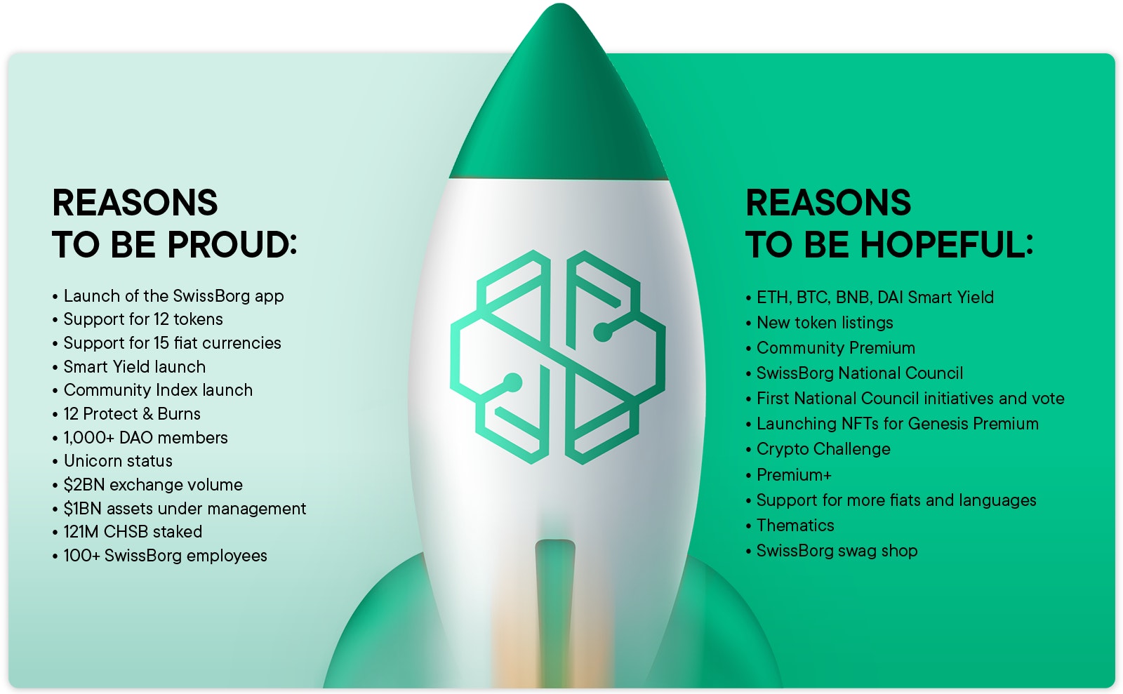 In the past year, rarely a month went by where we weren’t announcing a new feature or new token on the SwissBorg app. Here are some of the highlights: