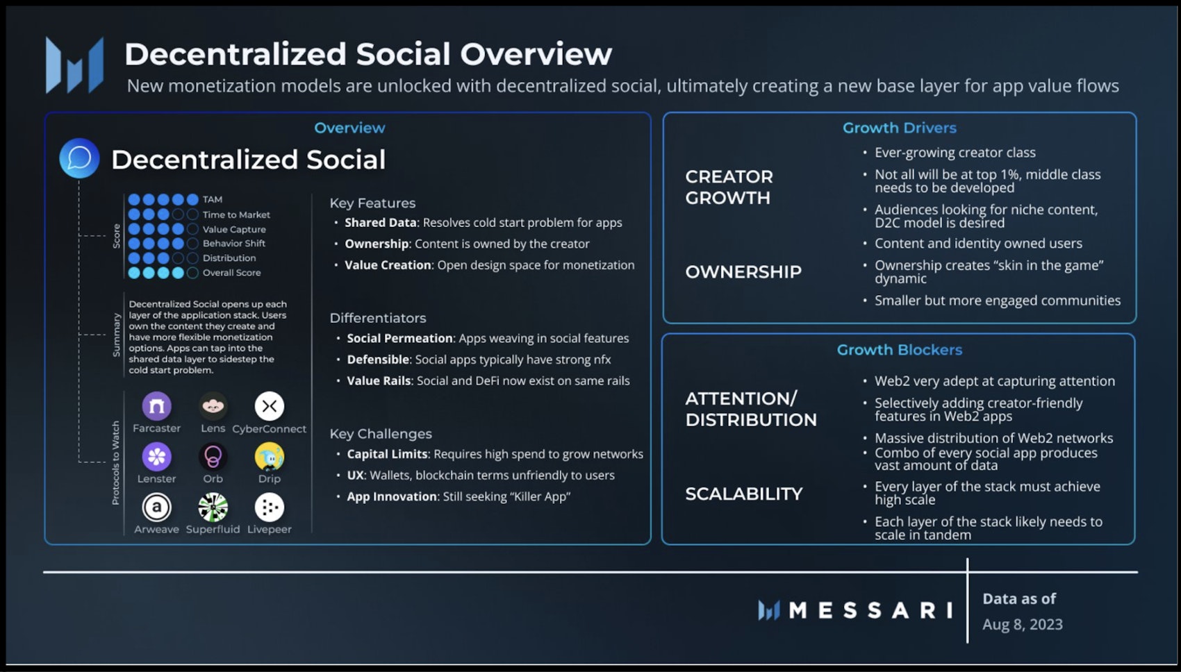 “Social products that place content ownership with creators instead of large platforms and allow for vastly more flexible monetization methods. The ultimate goal is to enable a new system for value flows across applications.” Seth Bloomberg, Researcher at Messari