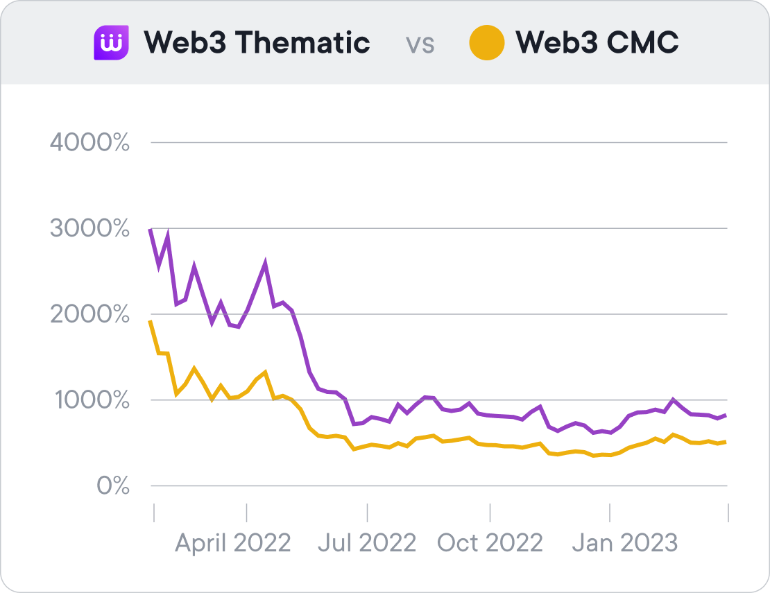While March was not the most exciting when it comes to performance, our Web3 Thematic continues to serve its purpose. These are to help users easily diversify their portfolio in a way that outperforms the broad web3 ecosystem.