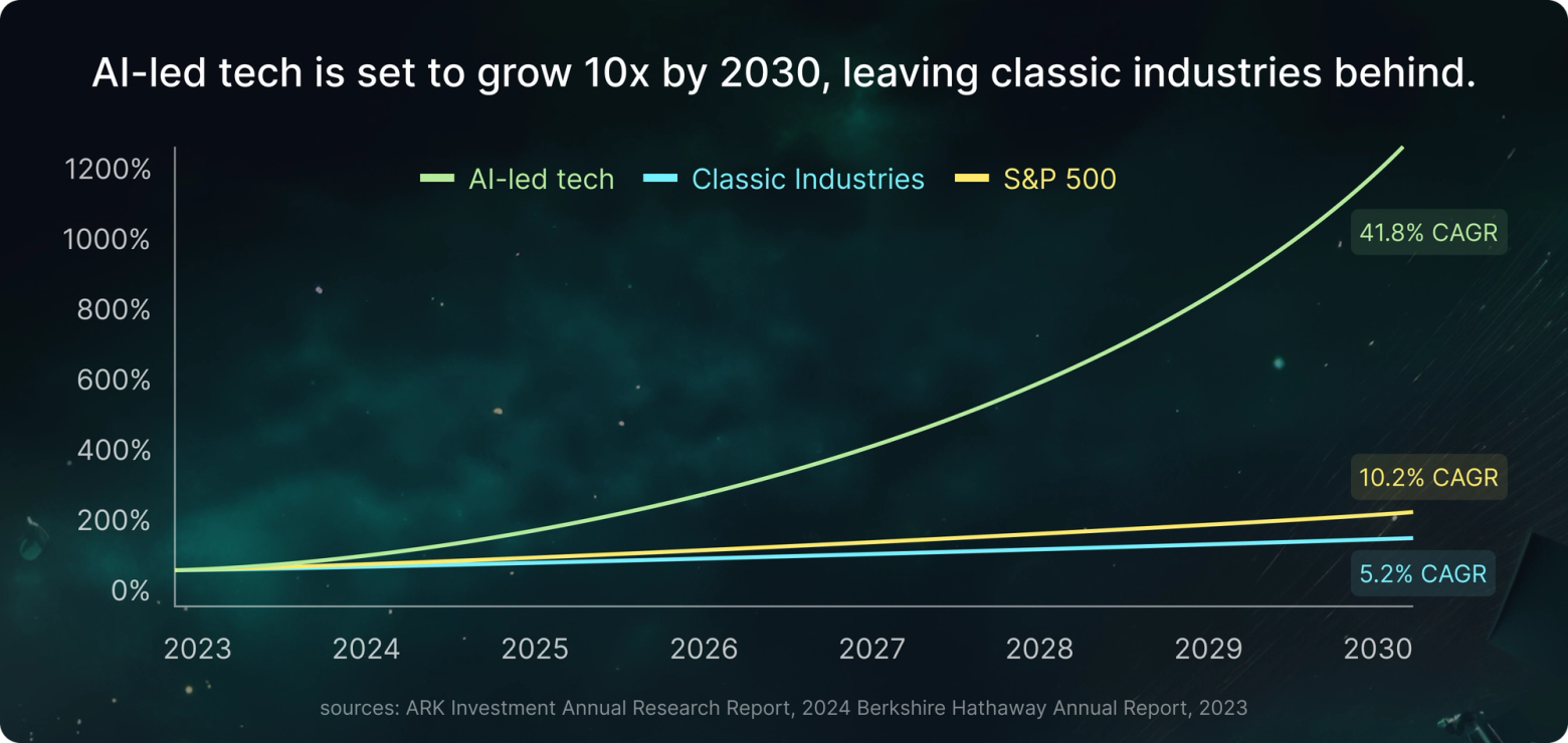 E-commerce in the 2000's. Blockchain's in the 2010's. Now, AI-tech is emerging as the greatest catalyst of this decade, monopolising growth as it transforms every industry.