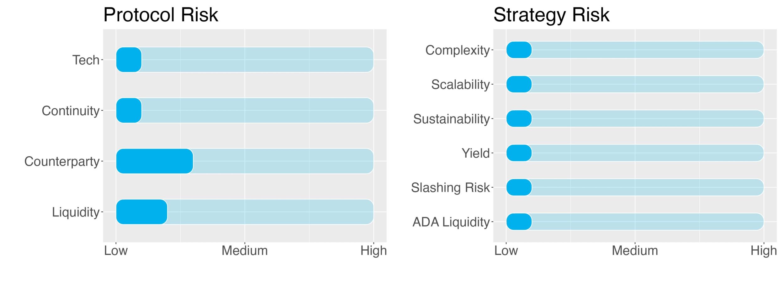Dennoch könnten die wichtigsten Probleme mit folgenden Punkten zusammenhängen: Kontrahentenrisiko, Liquiditätsrisiko des Protokolls und Liquiditätsrisiko des ADA-Stakings
