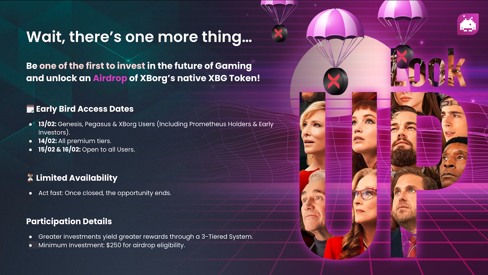Steig in der Early-Bird-Phase ein, und erhalte die Möglichkeit, einen außergewöhnlichen Airdrop von XBorgs nativem XBG-Token zu erhalten, unmittelbar vor dem offiziellen Start.