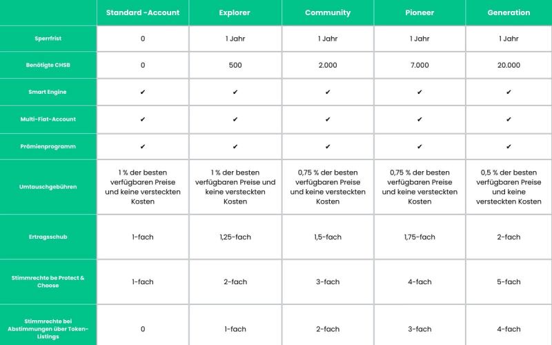Wir möchten dich auch daran erinnern, dass die aktuellen Marktbedingungen es dir ermöglichen können, CHSB zu niedrigen Preisen zu erwerben und so leichter in den Genuss der Premium-Vorteile zu kommen, von denen du schon immer geträumt hast!