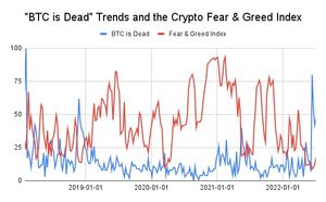 Le Crypto Fear and Greed Index, qui permet de tenter de visualiser le sentiment du marché, montre des niveaux atteignant de nouveaux planchers (6, ou peur extrême). Cependant, ceux qui sont au courant ont entendu l'appel de "crypto is dead" suffisamment de fois pour comprendre qu'il s'agit d'une situation habituelle du cycle du marché des cryptoactifs.