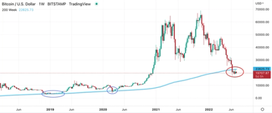 Les trois derniers mois ont été brutaux dans l'espace des cryptoactifs. Nous avons assisté à la chute de géants du secteur, à de violentes liquidations, à des pénuries de liquidités, et le Bitcoin a clôturé le trimestre à -56 % par rapport à la clôture du T1 à 45 000 $. Au cours des cycles de marché précédents, les sommets historiques du Bitcoin ont servi de soutien dans un marché en baisse. Cela s'est avéré vrai jusqu'en juin 2022, lorsque son prix est passé sous le sommet historique de 20 000 dollars de 2017.