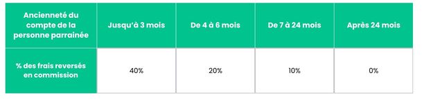 La commission que vous recevrez changera dans le temps selon le tableau suivant.
