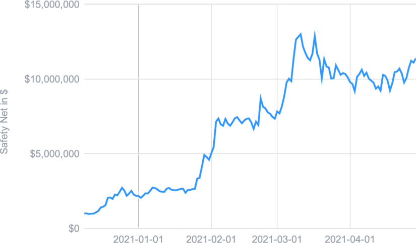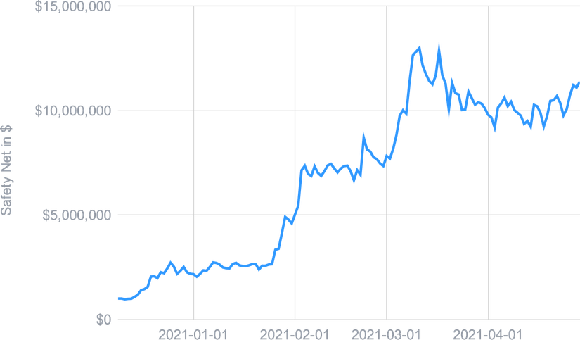 Le filet de sécurité est un pot commun à tous les portefeuilles Smart Yield et bénéficie donc du rendement de tous les portefeuilles. Ainsi, avec l'arrivée d'Ether ainsi que la croissance composée de l'USDC et une augmentation significative du prix du CHSB, le filet de sécurité est supérieur à 11 millions de dollars au moment de la rédaction de cet article.