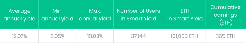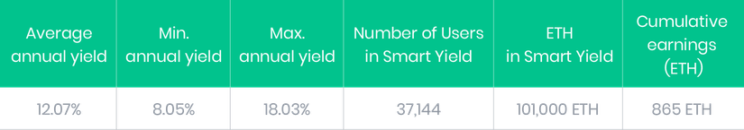 Depuis son lancement, le Smart Yield wallet d'Ethereum a livré un rendement moyen de 12,07%. Notre Smart Yield est donc dans une position extrêmement compétitive sur le marché de l'Ether avec des rendements importants.