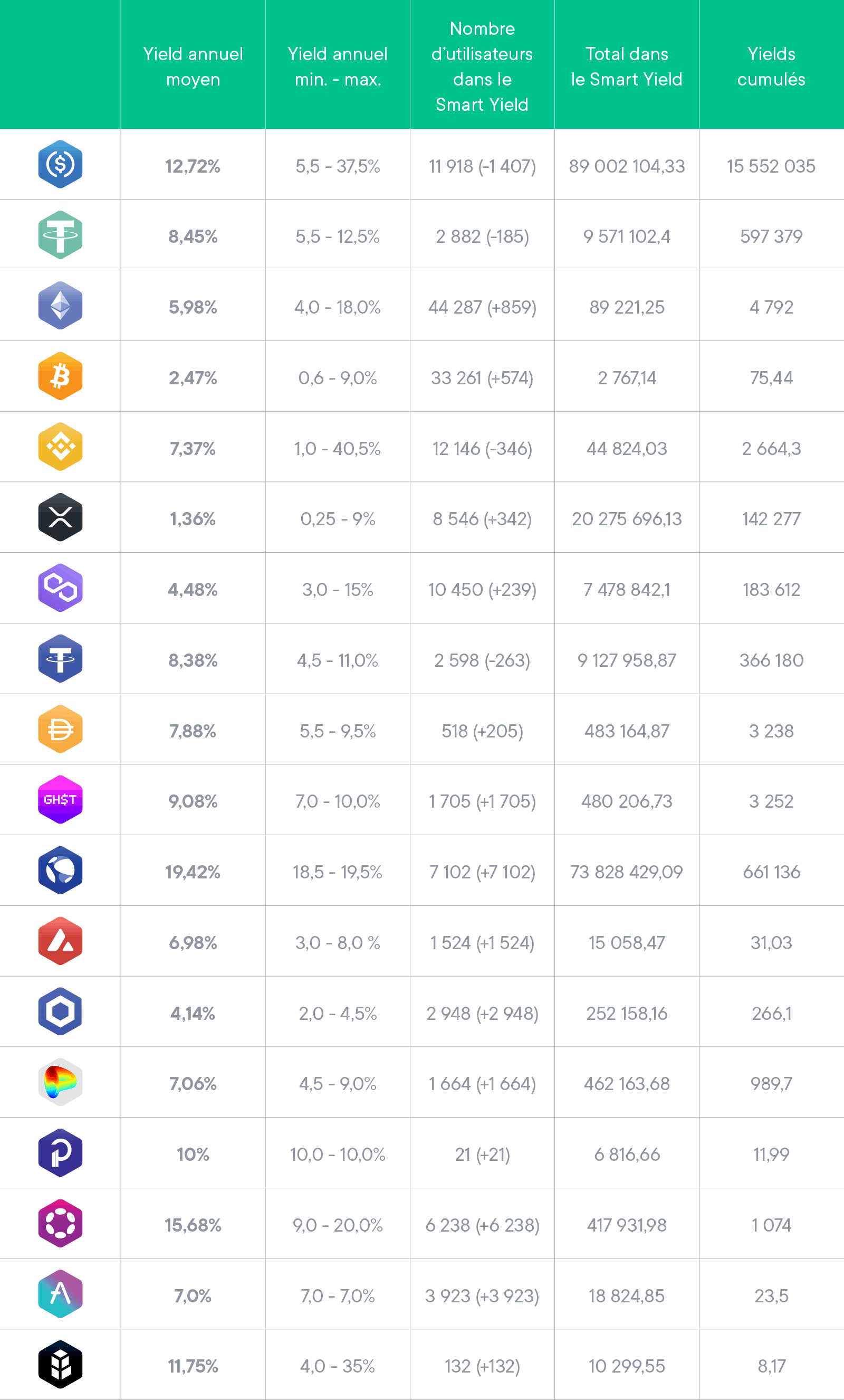Dans un souci de transparence envers notre communauté, nous recueillons mensuellement nos données pour vous donner un rapport sur les chiffres clés liés aux portefeuilles Smart Yield de SwissBorg.