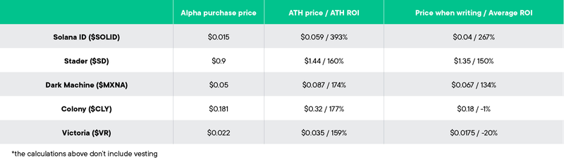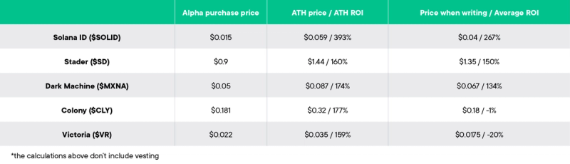 Voici un guide rapide des calendriers de vesting actuels de tous les Alpha Deals réalisés jusqu'à la fin de 2024.