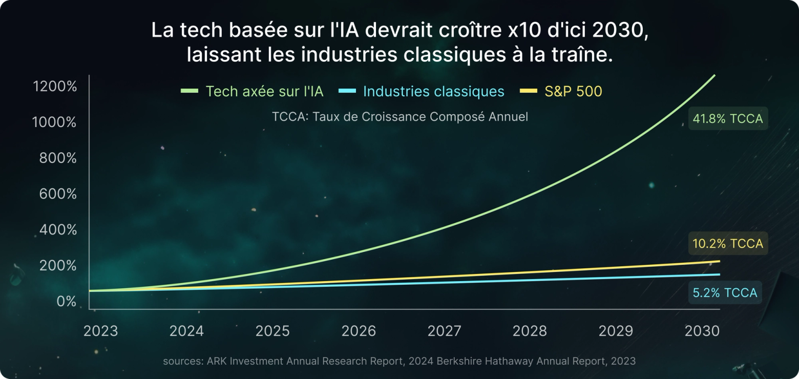L'e-commerce des années 2000. Les blockchains dans les années 2010. Aujourd'hui, la tech- IA s'impose comme le plus grand catalyseur de cette décennie, monopolisant la croissance à mesure qu'elle transforme tous les secteurs d'activité.
