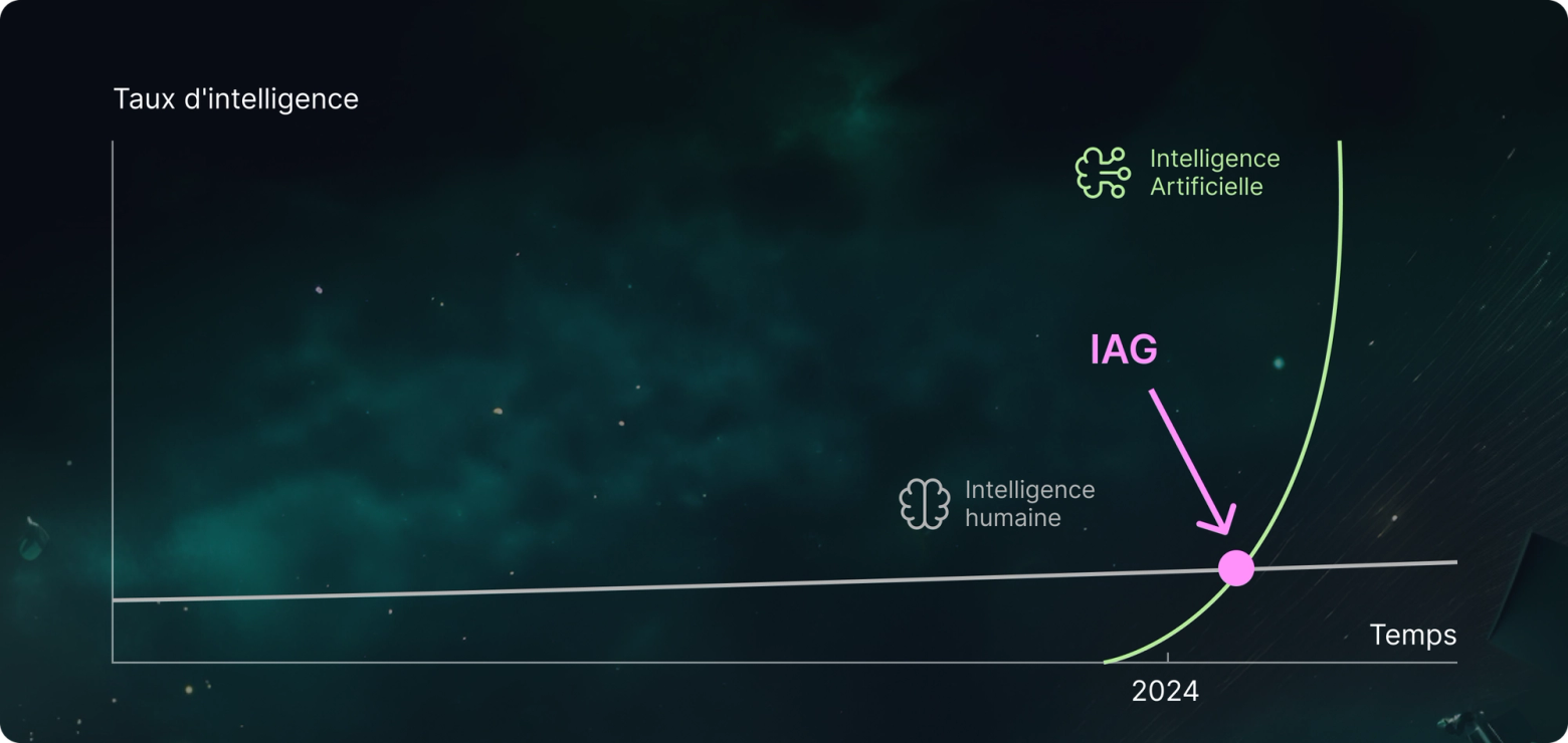Ce moment clé, connu sous le nom de singularité, donnera naissance à l'intelligence artificielle générale (IAG). L'AIG désigne une IA capable d'accomplir n'importe quelle tâche aussi bien, voire mieux, qu'un être humain.