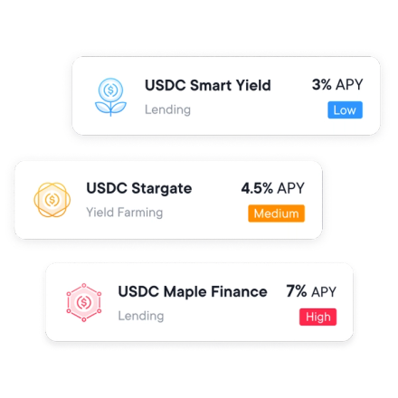 Each strategy for every crypto asset is assigned a risk level (low, medium, high), helping you assess its risks and make informed investment decisions.